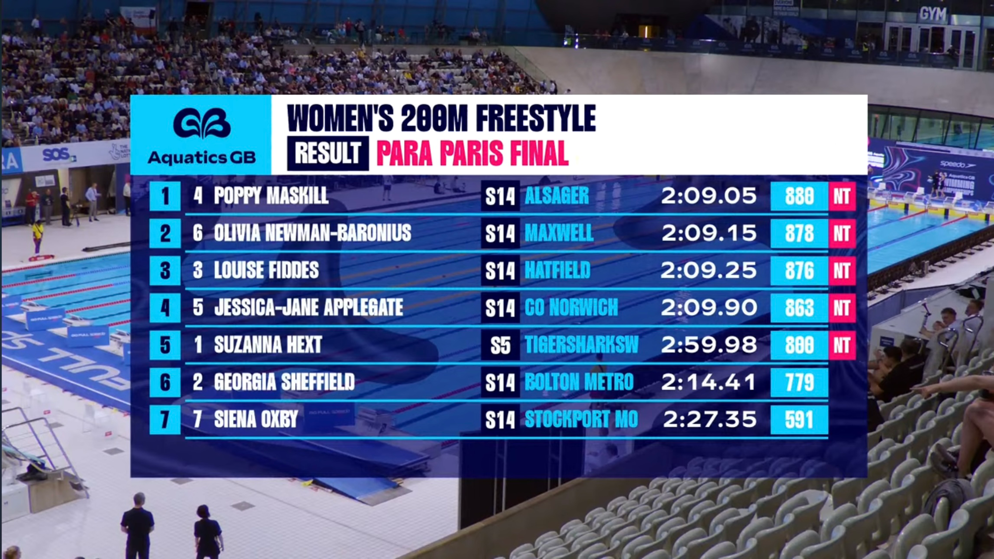 Congratulations to our first finals para swimmer @aquatics_gb Olivia Newman-Baronius who has qualified 2nd place at #Paris2024Trials with 878 points!